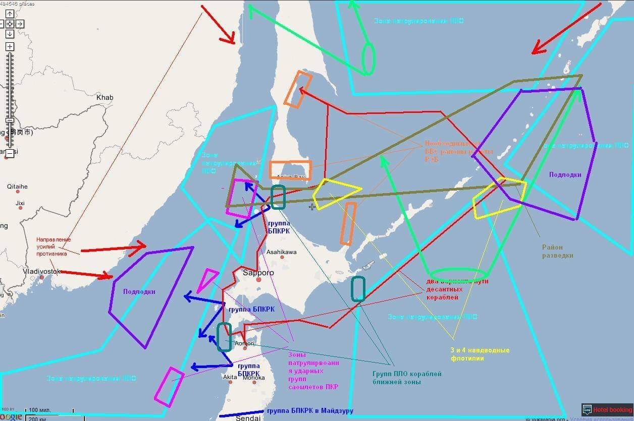 Тупые белые варвары вместо героического штурма Курил для начала наносят массированный удар КР, возможно КР со СБЧ и прочим по объектам гражданской инфрастуктуры Японии - хранилища СПГ, АЭС, дамбам Куробе, Юда и др, аэродромам. Япошек немношк смывает водой и радиактивной пылью, после чего собственно можно начинать изолировать ТВД.
