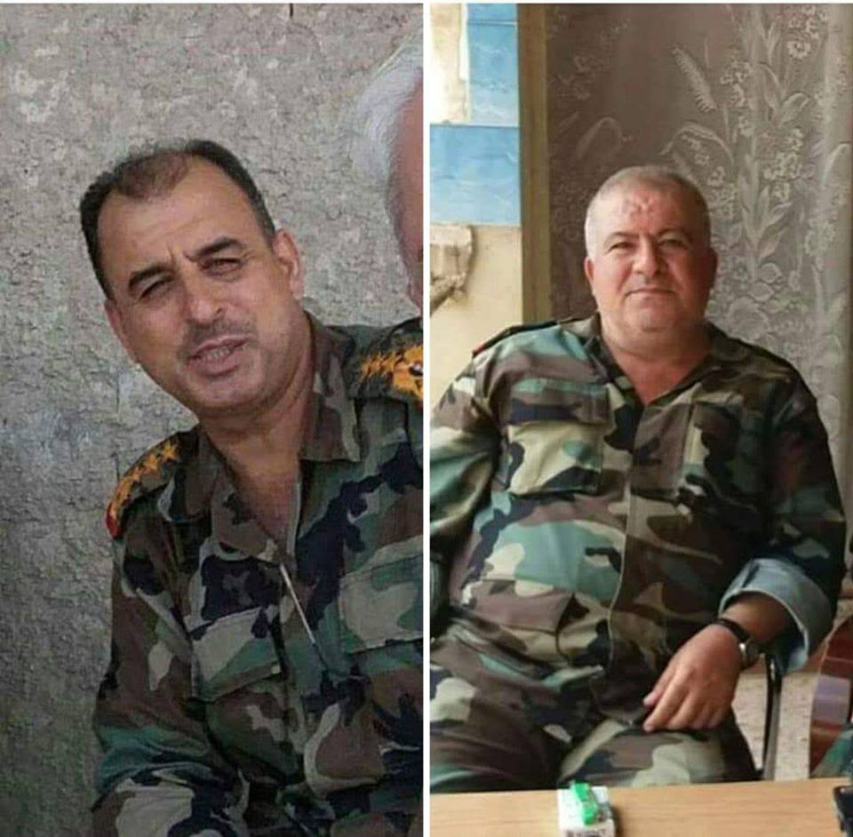 1. Бригадный генерал Имад Аднан Ибрагим, начальник штаба 106-й бригады Республиканской гвардии. Посмертное звание генерал-майор. 2. Бригадный генерал Юсуф Мухаммед Али, командир 137-го мотопехотного батальона 106-й бригады Республиканской гвардии. Посмертное звание генерал-майор. Также сегодня ранен бригадный генерал Камал Сарим. https://www.facebook.com/khadoora12/posts/676484956028569 https://www.facebook.com/permalink.php?stor...104405863625652 https://www.facebook.com/syria.alm7beh.w.al...755724221173589 https://www.facebook.com/Deir.alzour.news.n...141147829250630 https://www.facebook.com/tartousna/posts/1294938557306015 Нажмите для увеличения |