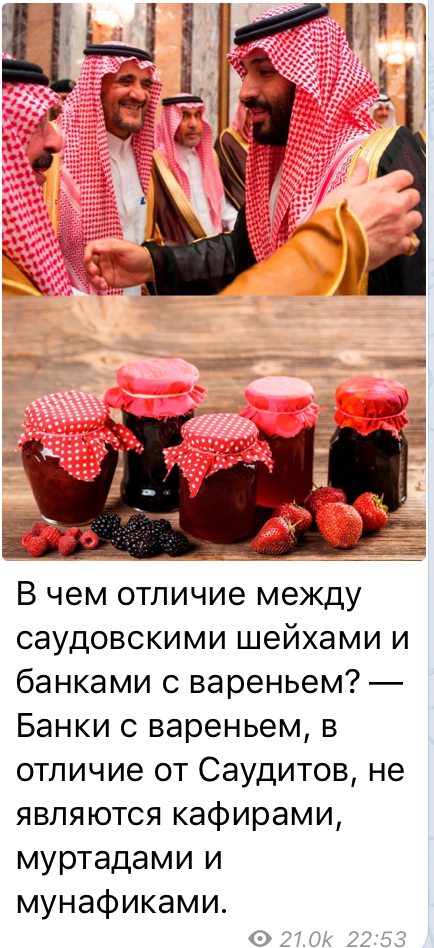 Цитата (fahed @ Июл 10 2018, 15:59) ТВ Джихад выложил вторую часть своего увлекательного повествования о кайфариках джихада. http://telegra.ph/Kajfariki-Dzhihada-Abu-Z...l-Moskovi-07-10 Ору в голосину. Такое впечатление что им Хуан новости пишет ![]() Отличный канал. -------------------- Zа макееVский рОдничок