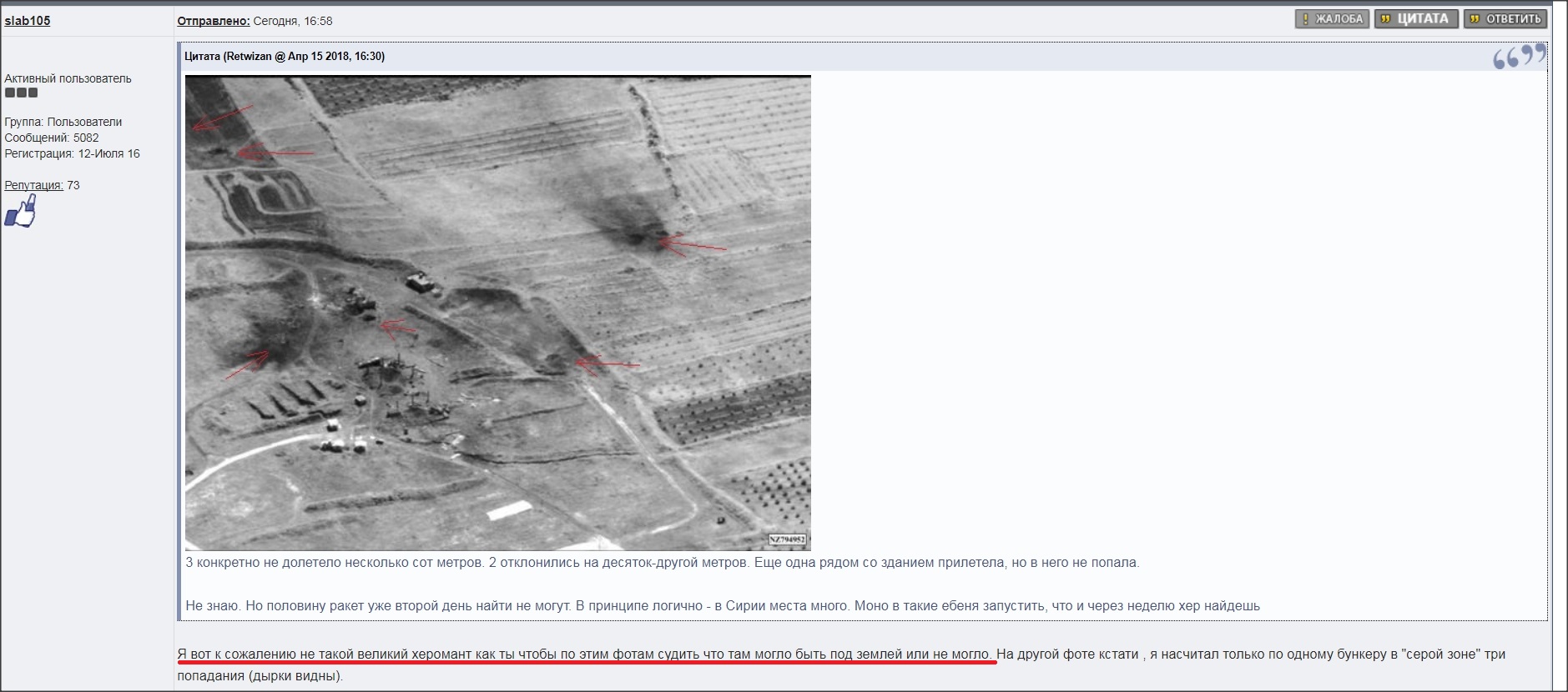 Цитата (slab105 @ Сегодня, 18:26) Когда я вижу своими глазками как на видео от МОРФ летит-летит Калибр и как он в кусты улетает- почему же мне не верить своим глазам? У меня с ними проблем нет. А когда на следующий день показывают какую то яму- откуда я могу точно знать от чего она и как там появилась? Логика надеюсь понятна? ![]() Тут не только логика понятна, но и умение переобуваться в прыжке зачтено. -------------------- Ценность любого оружия определяется успешностью его применения и готовностью к использованию в нужном месте и в нужное время.