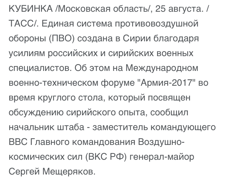 Цитата (atalex @ Апр 16 2018, 11:58) И что ты этими картинками сказать? То, что российская ПВО в Сирии получает данные и с сирийских радаров? Так мы это и сами знаем. А вот эта вот фраза про фсе воздушные цели в радиусе до 400км и на высоте до 35км она что обозначает? -------------------- Zа макееVский рОдничок