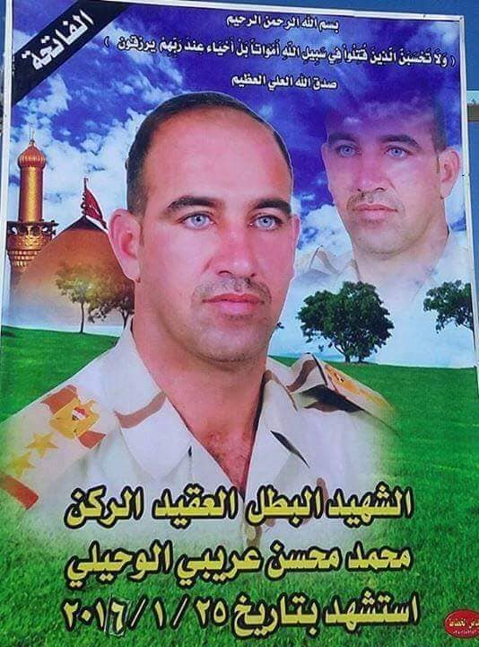 Цитата (Кирилл @ Дек 17 2018, 23:04) Бригадный генерал Мухаммед Ахмед Халаф ал-Карауи. После 2003 года на службе в новой иракской армии и полиции. В 2004 году был заместителе командира 3-го полка 2-й бригады 1-й дивизии федеральной полиции в Багдаде. Затем командир 47-й бригады. В этой должности участвовал в разгоне протестов 23.04.2013 в Хавидже обернувшемся большим кровопролитием. Далее командир 7-й дивизии. Погиб 21.12.2013 при подрыве на взрывном устройстве в долине Хауран на западе провинции Анбар в ходе операции против боевиков ИГИЛ. Посмертное звание генерал-майор. https://www.alsumaria.tv/news/88781/# https://www.facebook.com/photo.php?fbid=189...&type=3&theater Вместе с ним погиб полковник Хазем Мухаммед ал-Досари, командир 2-го батальона (полка) 27-й бригады 7-й дивизии. https://www.facebook.com/groups/16100351592...56770537868517/ |