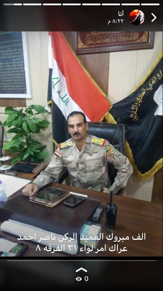 Не позднее января 2016 года был назначен командиром 32-й бригады 8-й дивизии. 12.06.2016 ранен в боях за Фаллуджу. https://www.eremnews.com/news/maghreb-news/2150740 https://thenewkhalij.news/index.php/article...%B1%D8%A7%D9%86 https://www.aa.com.tr/ar/%D8%A7%D9%84%D8%AF...AC%D8%A9/588360 Занимал должность командира 32-й бригады минимум до августа 2017 года. https://www.facebook.com/photo.php?fbid=195...&type=1&theater В мае 2018 года в 32-й бригаде был новый командир. https://www.facebook.com/permalink.php?stor...722583404658776 Нажмите для увеличения |