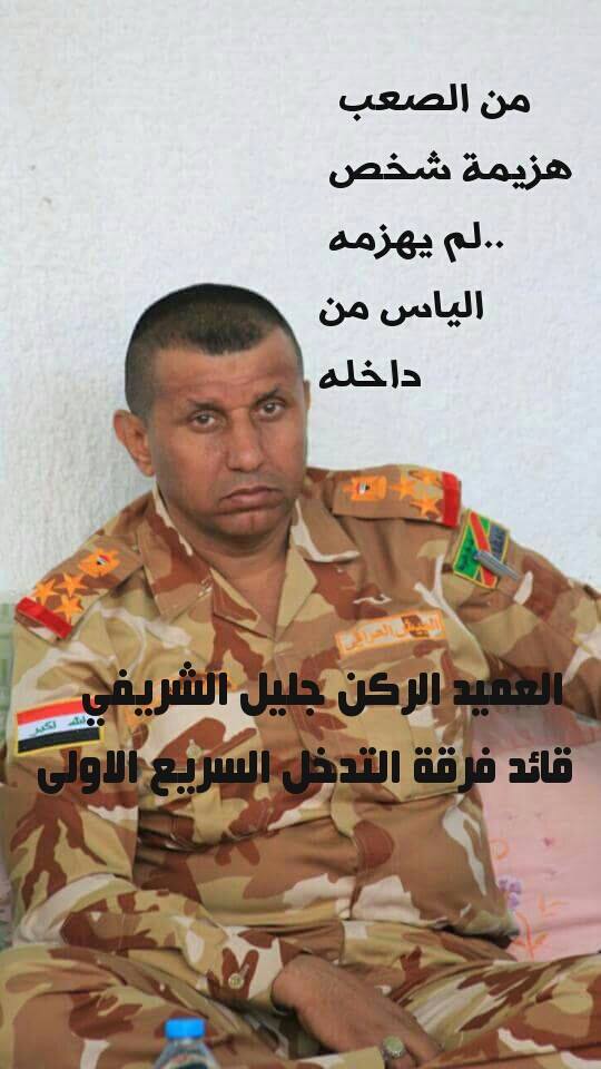 После 2003 года на службе в новой иракской армии. 5.09.2013 назначен командиром дивизии быстрого реагирования которую и возглавляет на сегодняшний день. https://ar.shafaqna.com/AR/32776/ http://almasalah.com/ar/NewsDetails.aspx?NewsID=16798 Участвовал в боях за Фаллуджу. http://15-shaban.com/news-2674.html Участвовал в битве за Мосул. https://www2.arabi21.com/story/959559/%D8%A...%D8%A9?lastId=0 https://www.pukmedia.com/Chap_RastBoChep.as...AR&Jimare=88340 Его фэйсбук-страница. https://www.facebook.com/generalthamer/ Нажмите для увеличения |