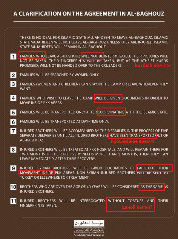 Цитата (fahed @ Мар 11 2019, 12:23) АХАХАХАХАХАХАХАХАХАХАХАХАХАХ ИГовские хотелки по Багузу. Интересно даже не то, что часть боевиков остается по своему желанию ,чтобы погибнуть - интересны требования по отношению к тем, кто вышел к СДФ. Просто ору, неадекватные. кстати обратите внимание на fluent English я бы сказал что носитель писал |