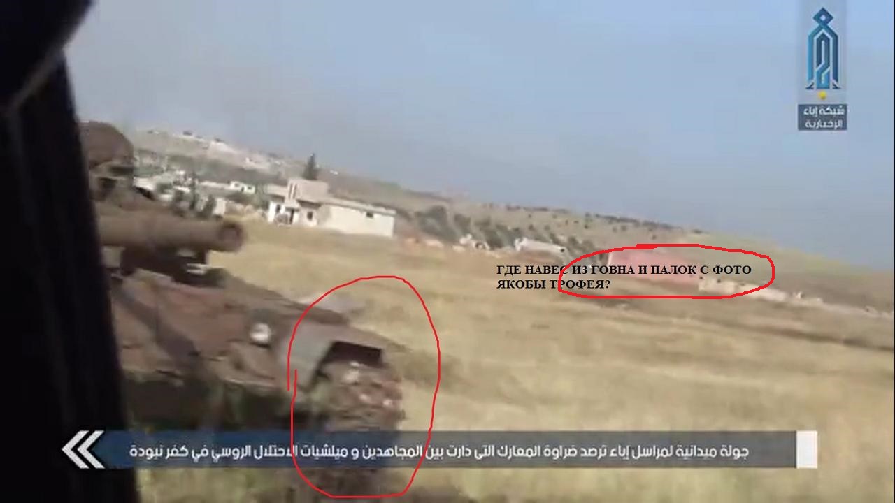 Цитата (fahed @ Май 24 2019, 14:25) А вот и новые фото от ХТШ подъехали из Кафрнабудды. Брошенная и уничтоженная техника , убитые лоялы. ![]() Похож на танк, на котором сами ХТШники наступали - http://waroffline.org/index.php?showtopic=...ndpost&p=376775 - но все же есть и различия. Нет цепи например. Хуй его знает. апд - нет, все таки наверное не наебывают, лояльский. Итого и вправду получается 3 даббабы, как и заявляли, пруфнули. -------------------- Такие как ты исподтишка тролят патриота © Madiev.