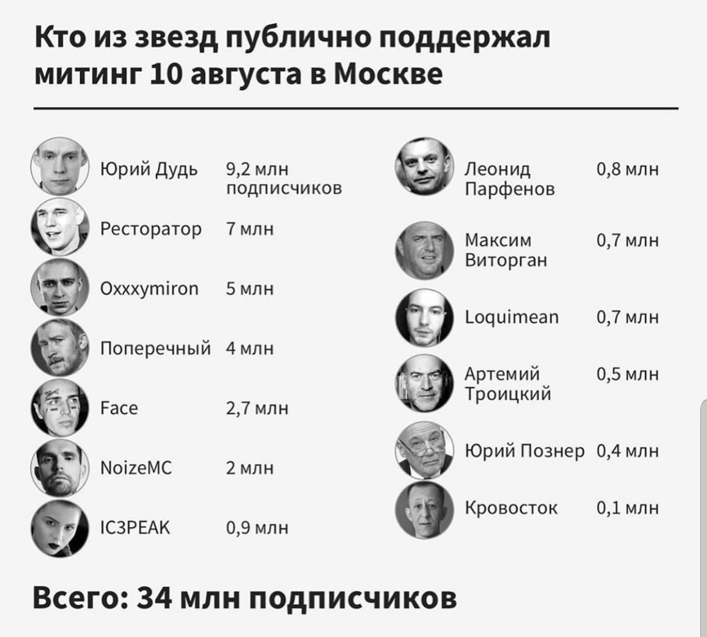Цитата (Rurouni @ Авг 10 2019, 00:09) ![]() Ресторатор тоже поддержал. И дудь. Несмотря на все запугивания, много знаменитостей призвало приходить на митинг. Интересно что много реперов, которые вообще были аполитичны. Видать задело, когда по Хаски и icepeak проехалась госмашина. Очень позитивная новость. Ну, теперь Окси сможет нормально ответить не дисс Гнойного, который был несколько месяцев назад, лол. |
