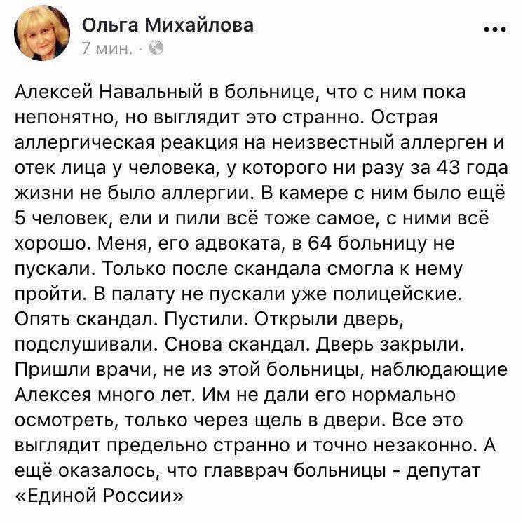 Цитата (Прапор @ Июл 28 2019, 23:08) У больницы, где находится Алексей Навальный, начались задержания. Собравшиеся ничего не скандировали и никому не мешали. Видео https://twitter.com/IfSoAnn/status/1155570997493473281 Это пиздец ахишки. Рукалицо,попробуй после такого поверить что ему стало плохо случайно -------------------- Да чо там? Расследование, понятное дело, не сможет юридически достоверно установить принадлежность ЗРК, сбившего Боинг. А разные косвенные доки и всякие снимочки с интернета юридически ничтожны. На них заключение не построишь. Тут, кстати, тактика наших властей - вкидывать вагон вбросов, достаточно действена. Глядишь, за кучей фейков правдивая информация потеряется.