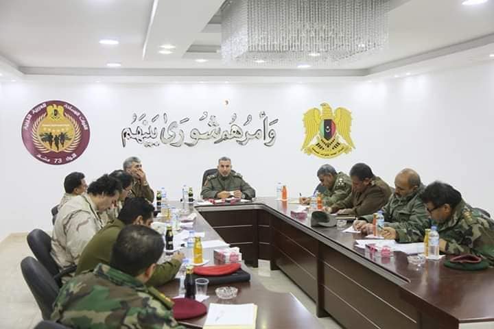 Встреча командного состава 73-й бригады (хафтаровцы). Бригадный генерал Али Салех ал-Катани, командир 73-й бригады. Полковник Ибрагим Мухаммед, заместитель командира 73-й бригады. Полковник Омар ал-Джарах, командир 165-го батальона. Полковник Фати ал-Наджар, командир 276-го батальона. Полковник Тауфик ал-Рамбо, командир 123-го батальона. Полковник Абд ал-Хамид Араджи, командир 153-го батальона. Полковник Махди Авами, командир 409-го батальона. Полковник Ахмед Хусейн, командир 298-го танкового батальона. Бригадный генерал Абд ал-Хади ал-Сенусси, командир 303-го артиллерийского батальона. https://www.facebook.com/NationalArmyNews/p...593980717690888 https://www.facebook.com/Benghaziagainstter...186682214840209 https://www.facebook.com/permalink.php?stor...192947524915690 https://www.facebook.com/mohamed.trbl/posts/475910702936805 https://www.facebook.com/permalink.php?id=1...181216782139477 https://www.facebook.com/permalink.php?stor...100022830409471 https://www.facebook.com/permalink.php?stor...100009464718207 https://www.facebook.com/permalink.php?stor...100008471075157 https://www.facebook.com/permalink.php?stor...033787580135641 Нажмите для увеличения |