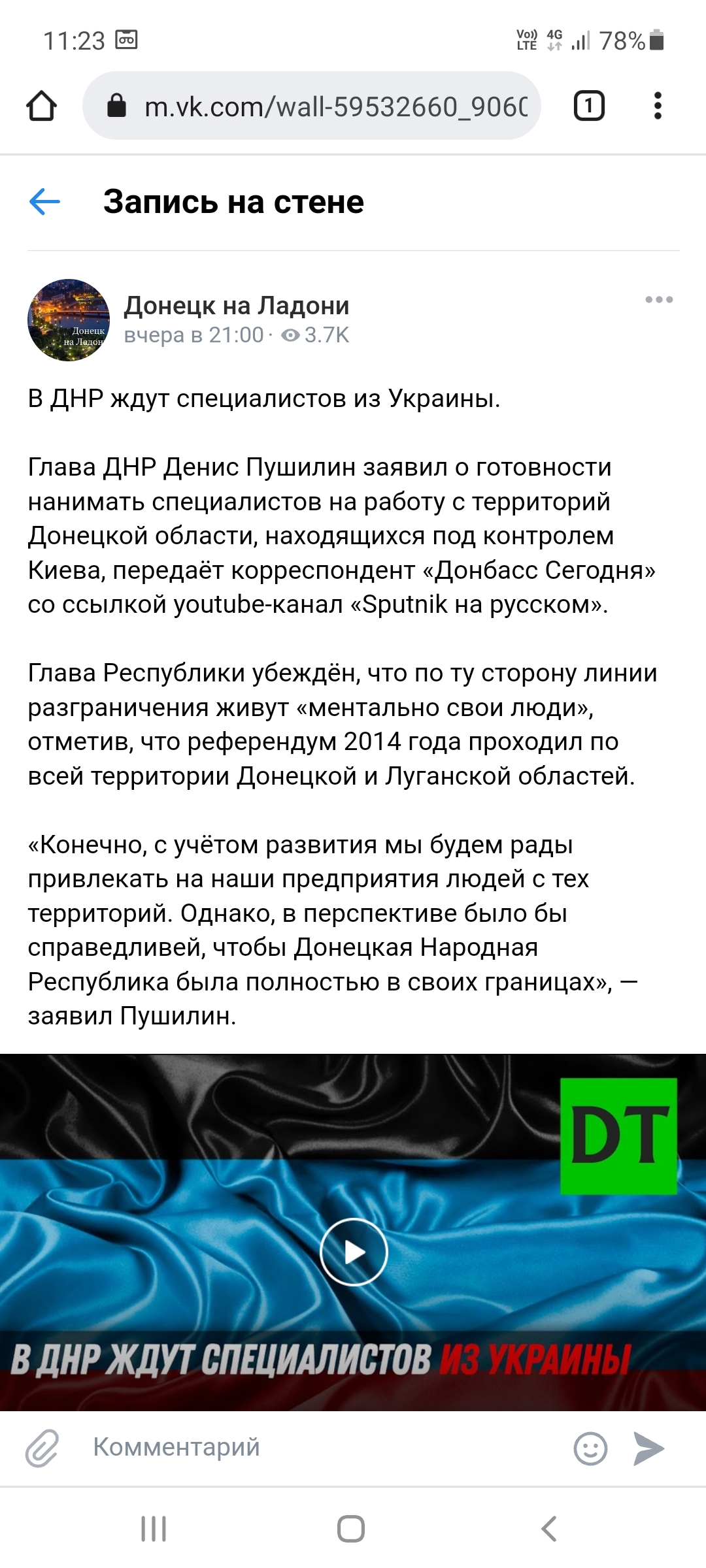 Сейчас внезапно пришёл к одной мысли, что российская власть в данный момент на большем государственном уровне признаёт и проводит контакты с казалось бы запрещённым «Талибаном», нежели с казалось бы родственными ЛДНР. -------------------- Такие как ты исподтишка тролят патриота © Madiev.