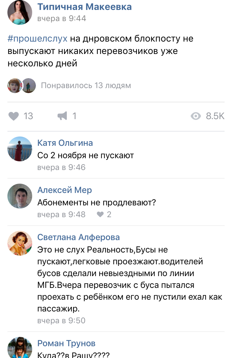 Цитата (МИХАЛЫЧ @ Ноя 7 2017, 12:50) что то тут не то. Выехать же можно? Если ты не водитель автобуса, то да. А если занимался перевозками людей, то нет. Народ в каментах радуется. Говорят кому то бабла на новогодний подарок не хватило вот и решают вопрос. И че то не понимают почему какие то люди могут решать кому и куда можно ездить, а кому нет. -------------------- Zа макееVский рОдничок