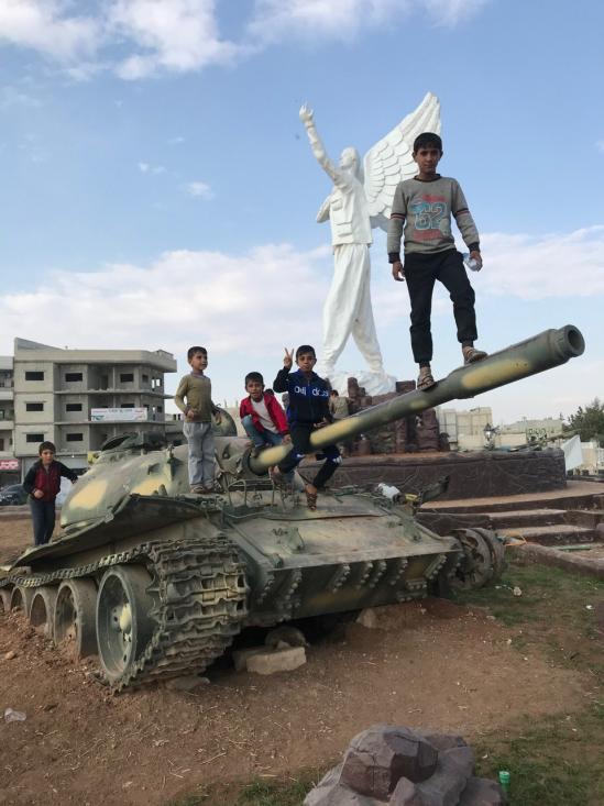 + Демонстрация на контрольно-пропускном пункте Баб-эс-Салама против въезда сил Асада в город Тал-Рифаат
