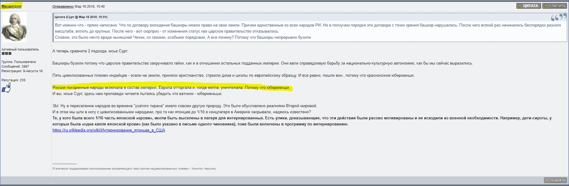 Цитата (12th @ Сегодня, 14:34) Странно. Российская империя в отличии от наглосаксов всегда строила школы и больницы. А тут какой то голод и геноцид. Прям как белые господаы индейцев. Яркий пример когда сказать не чего, а промолчать, нельзя Да, кстати. К тебе, как к спецу по индейцам, о каких "белых господах" речь ? Можно конкретизировать ? |