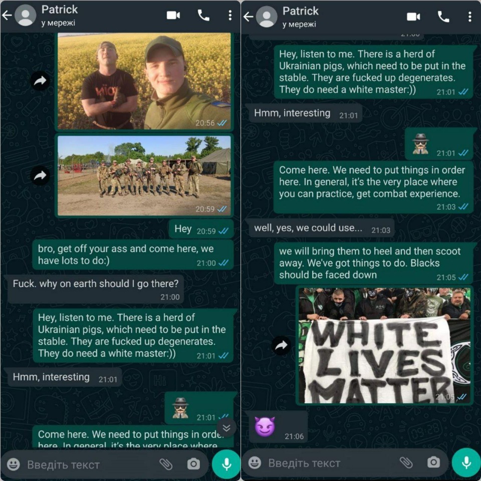 Вообще по скринам переписки, предоставленной со стороны ДНР, погибший был интересным персонажем ![]() Перевод Илин: -Хей, бро, поднимай свою задницу и приезжай сюда, тут есть чем заняться. Патрик: - черт. Что там делать? Илин: - слушай меня. Тут стадо украинских свиней, которых нужно загнать в стойло. Они конченные дегенераты. Им нужен свой белый хозяин. Патрик: - Хм, интересно. Илин: - Давай сюда. Нужно навести тут порядок. А вообще, здесь самое место, где можно потренироваться и получить боевой опыт. Патрик: - ну да, это не мешало бы. Илин: - построим этих недоносков, потом рванем домой. У нас дел по горло. Черных надо ставить на место. Судя по всему, у белого хозяина что-то пошло не так. -------------------- Красный цвет - цвет администрации. © Pampa