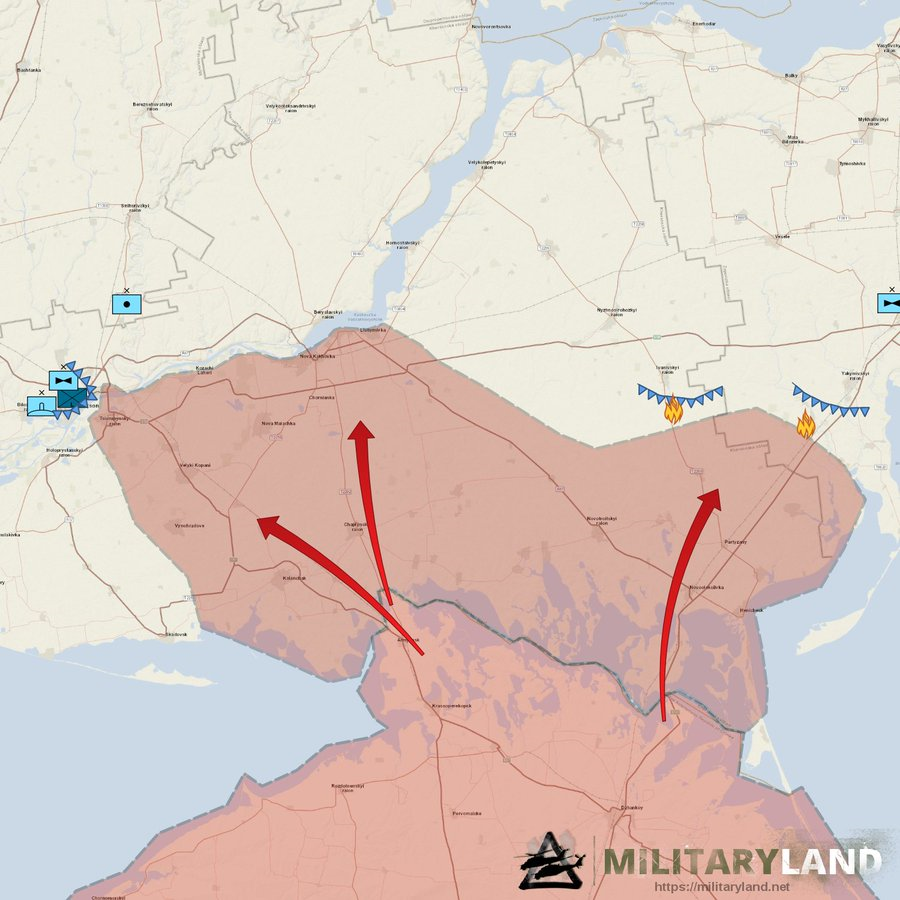Обратите внимание на то что в Крымской группировке указывается 42-я "чеченcкая" мотострелковая дивизия. Понятно что она не вводилась в бой полностью. Возникает вопрос кто атаковал на втором направление Геническ-Мелитополь.