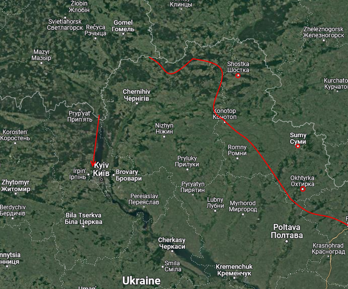 К вечеру 24.02.2022. Учитывайте массовые сообщения о том что в районе Сум и Ахтырки кто-то кого побеждает до сих пор, ловят каких-то российских диверсантов, Шостка удерживается и пр. В общем, крайне противоречивая информация. Реальность этой карты мы узнаем чуть позже.