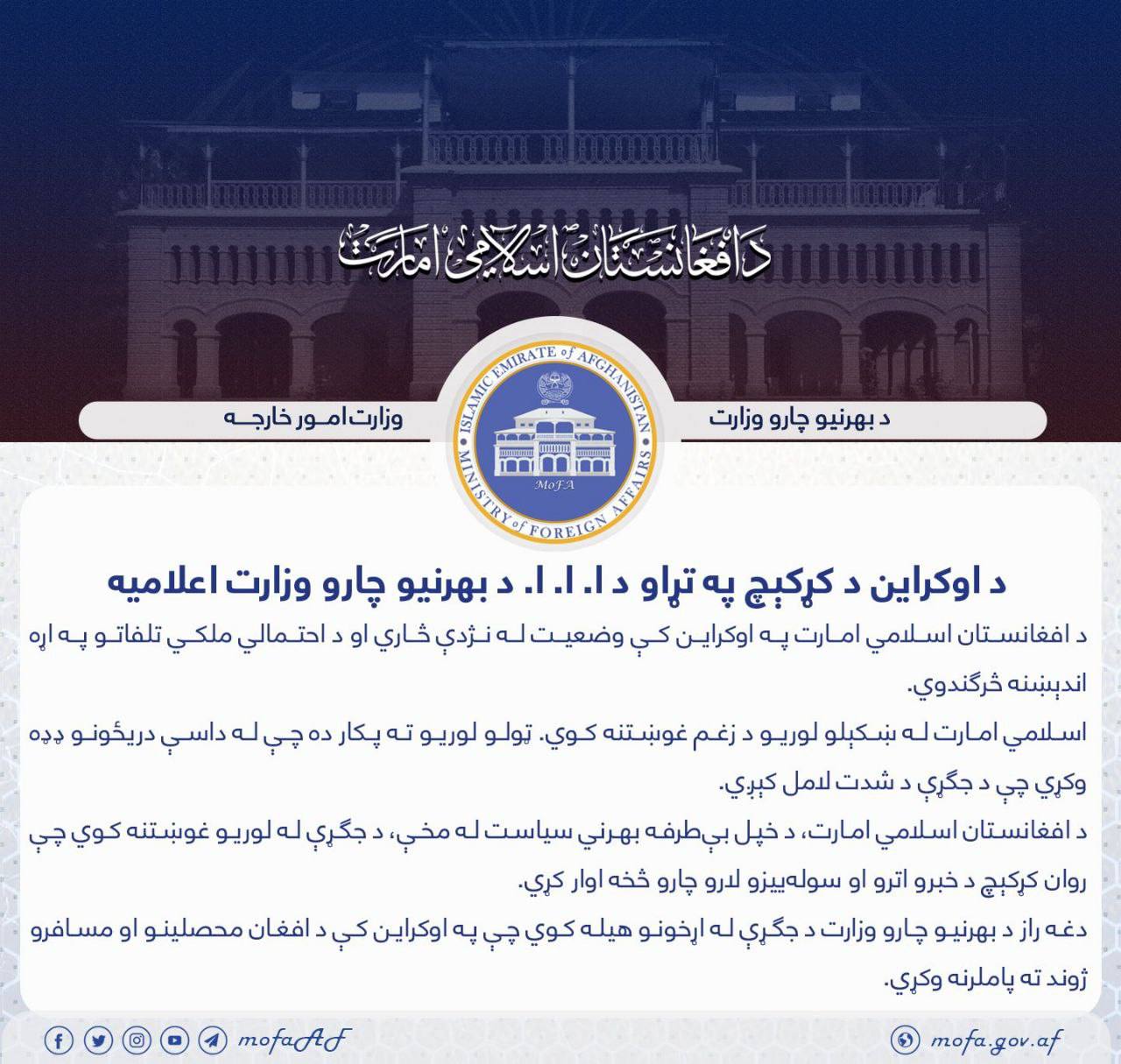 МИД Талибана*, наконец, отреагировал на конфликт на Украине. Итак:
