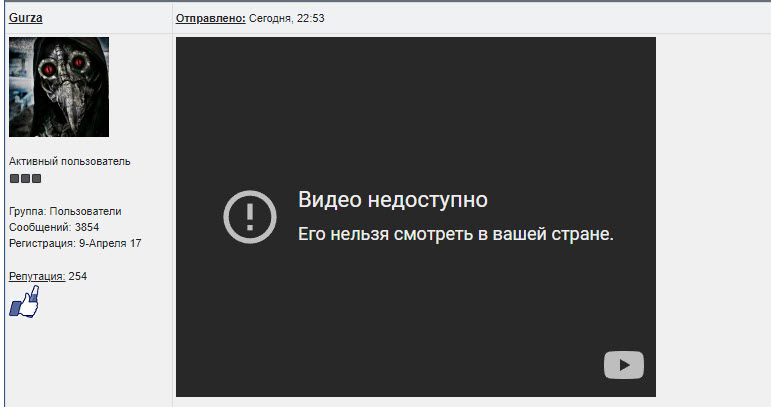 Цитата (KaZus @ Мар 8 2022, 23:18) Там что, забористая пропаганда? Добавляйте текстовое описание к своим роликам. Уже не первый такой Ставь ВПН и обходи цензуру в вашей стране. |