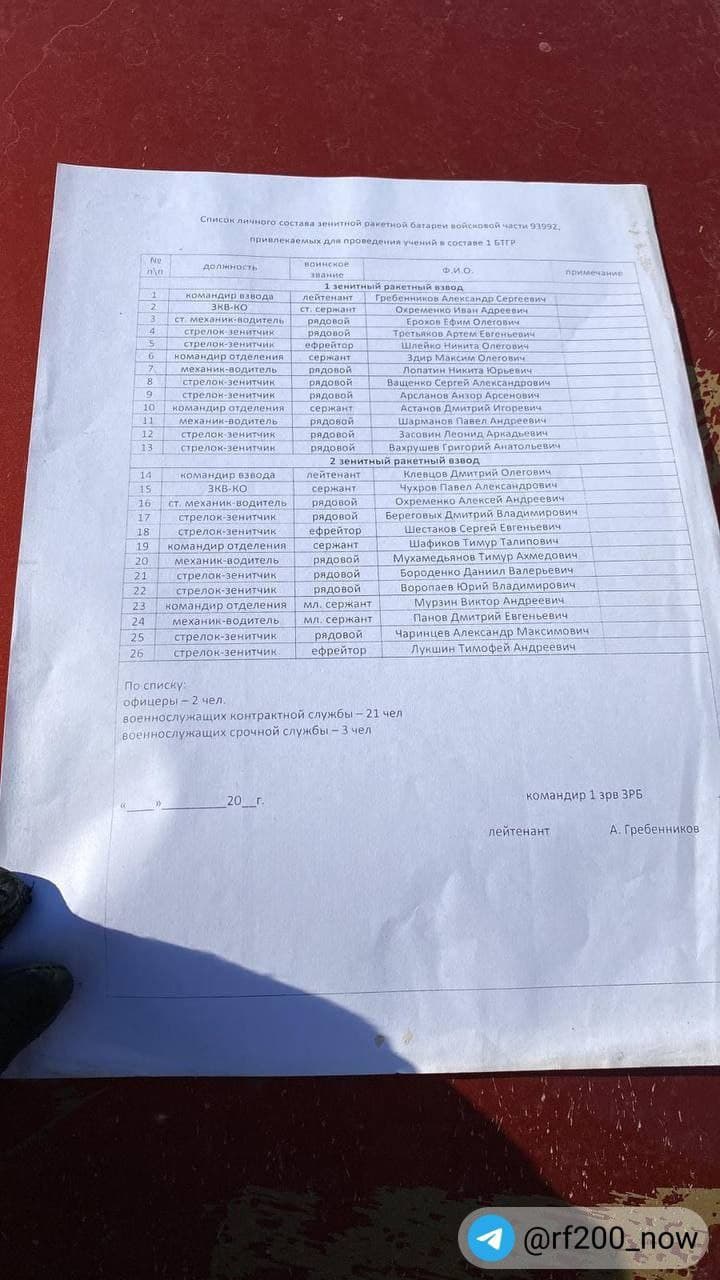 Выложили список зенитной ракетной батареи в/ч 93992 и клевещут, что всех положили.