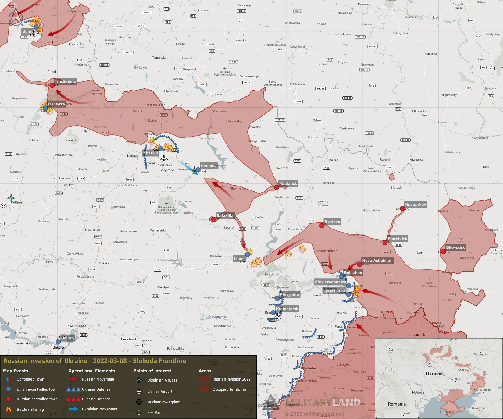 Цитата (Багник @ Мар 25 2022, 21:02) По этой карте он спорный. Но был за ВСРФ - были видосы с многочисленными колоннами на улицах, еще емнип тут публиковали воспоминания беженцев, + украинская сторона жаловалась на размещение российской арты в жилом секторе. Вот например более ранняя карта от того-же автора: ![]() |