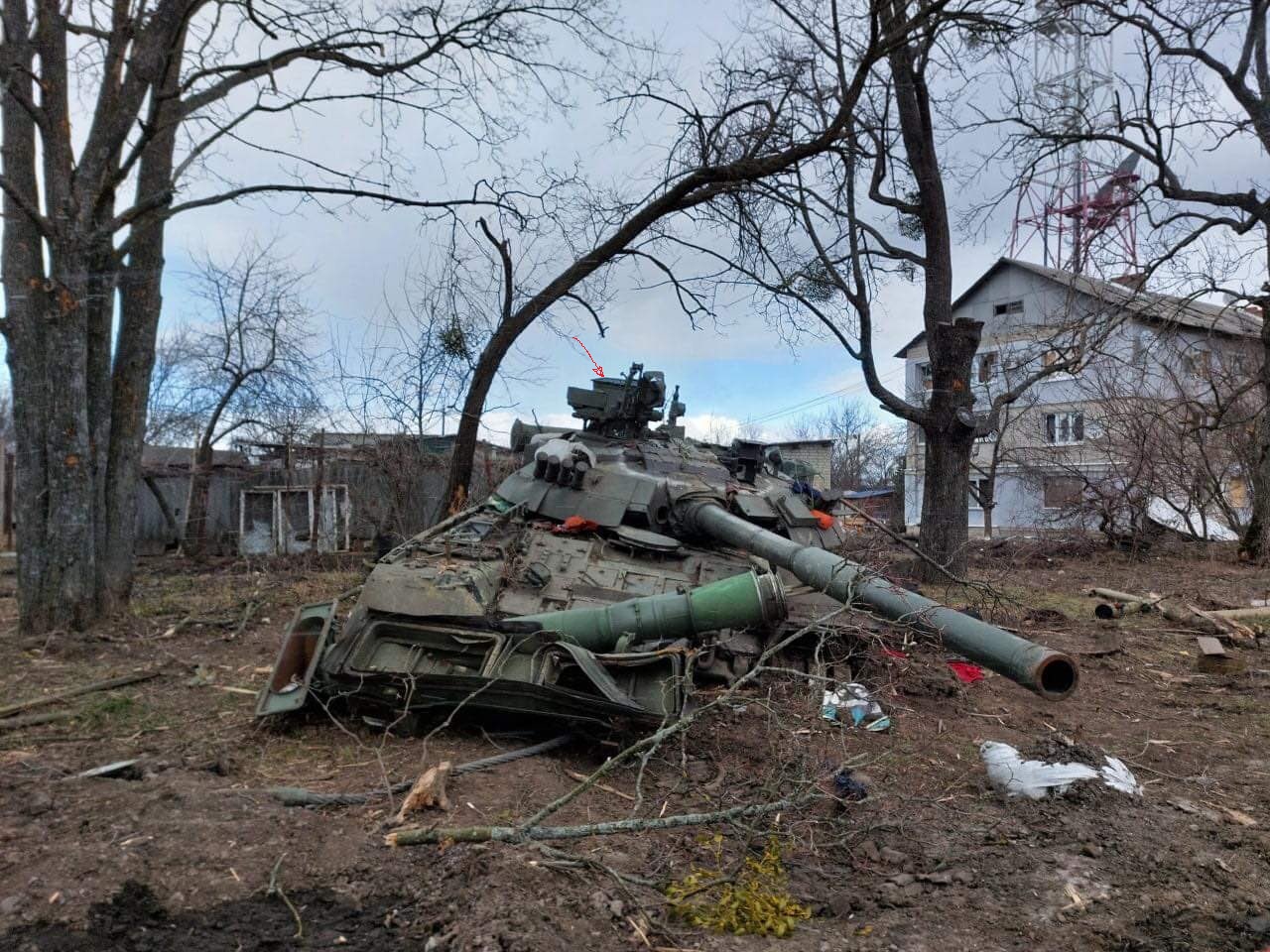 Цитата (alexma2009 @ Мар 27 2022, 22:18) [QUOTE=Ьелецкий,Мар 27 2022, 21:08] Подозреваю, что тоже в Тростянце. https://twitter.com/OSINTua/status/1508160160509927430 А что у него на башне торчит (в районе командирского люка), панорама чтоли? Или это часть трубы для подводного вождения? |