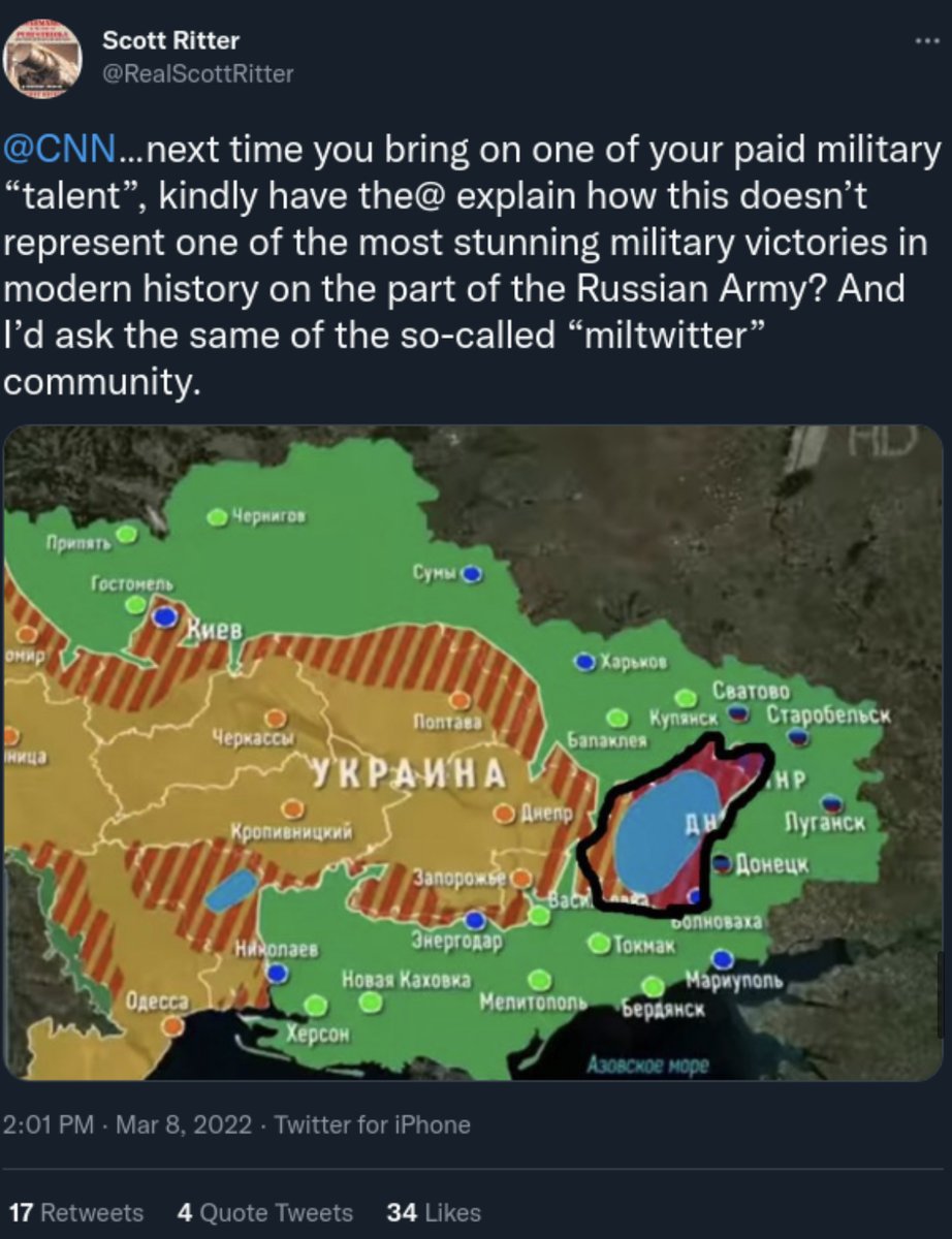 Но коварные наты прислали химарсы, спутниковую разведку и началось выбивание логистики, без которой все великие планы россиян пошли попизде. Само собой, аналитики в тиктоке не знали про химарсы. И мы про них не знали. И про то, как они себя покажут, не знали. Все последующие события стали сюрпризом. Ну и да, триумфом западной военной мысли и западных технологий. |