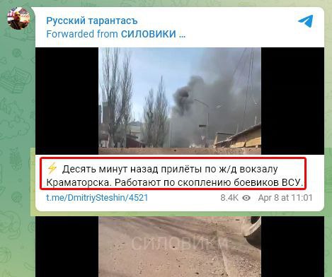 Публикация про запуск из Шахтёрска появилась в 10:25, первые сообщения о прилетах в Краматорске в 10:45.
