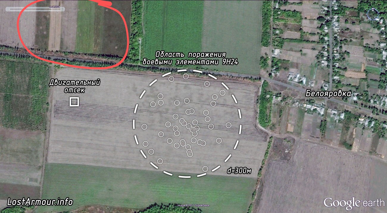 Цитата (Ьелецкий @ Апр 8 2022, 14:48) Я не возьмусь отрицать со 100% уверенностью, но вообще там есть фото падения хвостовика, а вот место поражения кассетами человек определил на основании мутных пятен со спутниковых снимков. Почему он решил, что эти пятна являются именно следами поражения от кассет, я не знаю. И почему этими следами от кассет не могут быть пятна в области, которую я выделил красным? По этому случаю есть фото с места поражения кассетами (как с хвостовиком) или только спутниковый снимок? ![]() Мне очень трудно представить себе что массивная хвостовая часть могла упасть на том же самом расстоянии по направлению полета, что и мелкие кассеты. Зоны на спутниковом снимке выделены автором по сути на одной горизонтальной линии по направлению с севера на юг. |