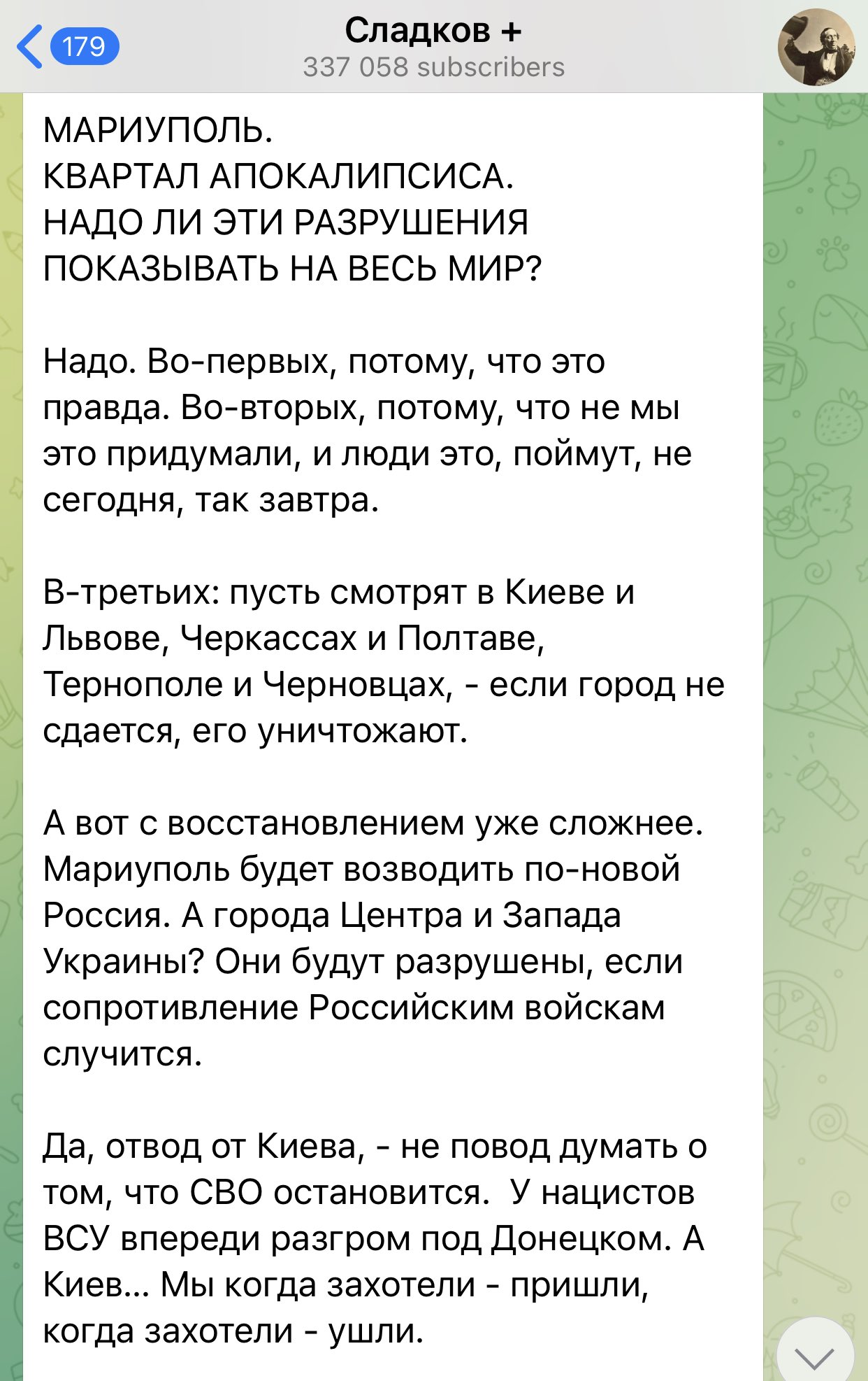 Это снимала украинская полиция в Буче после ухода рос войск. Трупов нет- Видео, христиане катаются по Буче и раздают еду 2 апреля, трупов нет- Если что, то война это ужас,а путен жестит. 7 |