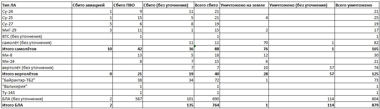 Цитата (Old_Henri @ Май 15 2022, 14:09) На лосте считают победы : https://uploads.disquscdn.com/images/5c77bb...4624b6778c4.jpg 165 самолетов, 125 вертолетов и 879 БПЛА насчитали. что за идиотия, это таблица сделана по заявкам МОРФ и к тому что считают в базе не имеет отношения. |