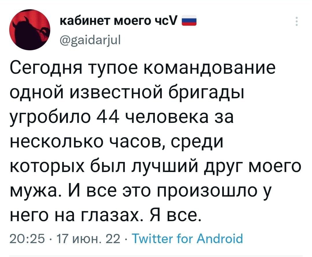 Цитата (serafim @ Июн 18 2022, 03:17) насколько помню, выходил второй колонной которая проскочила в Иловайске, хотя могу ошибаться Не, он служил в 2014 в ротной тактической группе 92й бригады которую разбили под Старобешево 27.08.14 Вот описание этого боя https://peacekeeping-centre.in.ua/Museum/Ea...Articles/92.htm Демобилизовался ЕМНИП в 2015. Сразу пошел в тероборону. Сборы, учения и т.д. Работал, если склероз не подводит че то связанное с нефтегазом. -------------------- Zа макееVский рОдничок