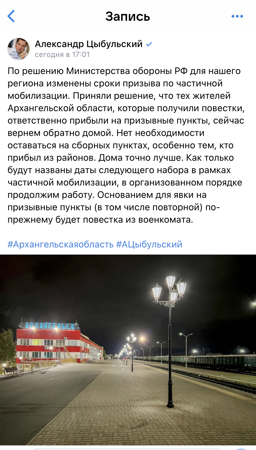 Губернатор написал в своей вк-шечке, что всех отпускают домой и что «Дома точно лучше». По слухам, армия не готова принять всех мобилизованных. В нашем чатике пишут, что в учебке в Каменке под Питером мобилизованных не кормят второй день - существуют на подножном корму. По сути - расписались в том, что мобилизация провалена. Обосрались. Если бы на нас напала НАТА - жили бы уже при американцах и учили инглиш) Нажмите для увеличения |