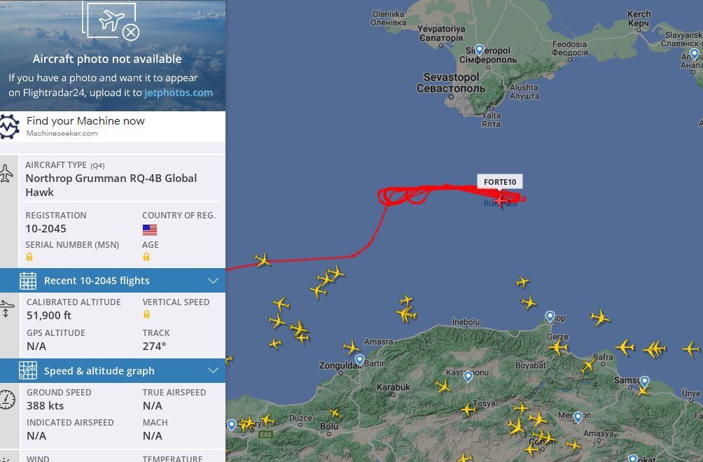 Цитата (Auson @ Окт 10 2022, 15:47) Над Черным морем у Крыма НАТа убрала самолёт-разведчик с людьми, теперь кружит беспилотник. RQ-4 Global Hawk. он там каждый день кружит, едва не сутками, один сменяет другой и так с середины мая самолеты с людьми обычно летают над укропольской и польскобелорусской границей |