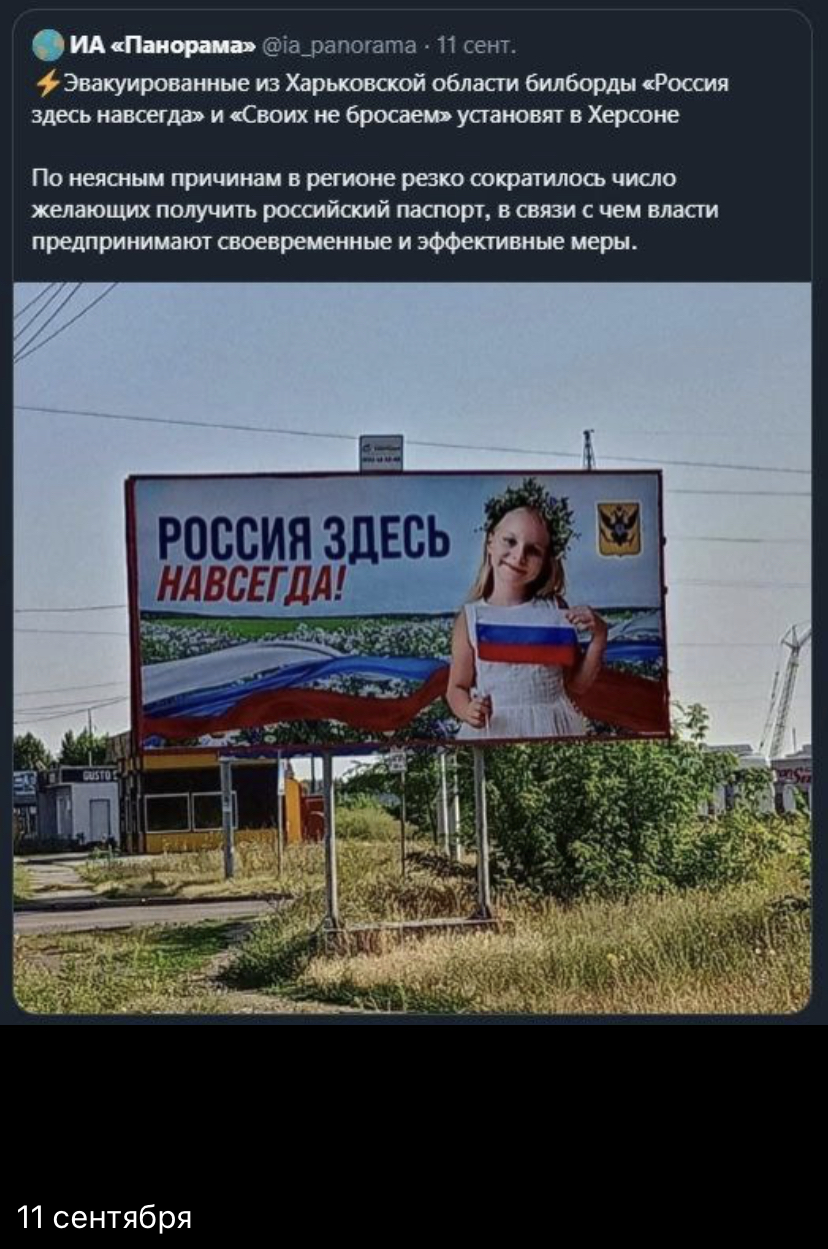 ⚡️Стремоусов: Пока я жив, Херсон не сдадим— Борис Золотаревский (@ZolotorevskiyB) November 9, 2022 -------------------- Не возжелай страны ближнего своего, и свободы его, и сала его, и Крыма его - и не застрянут у тебя в жопе вилы его.