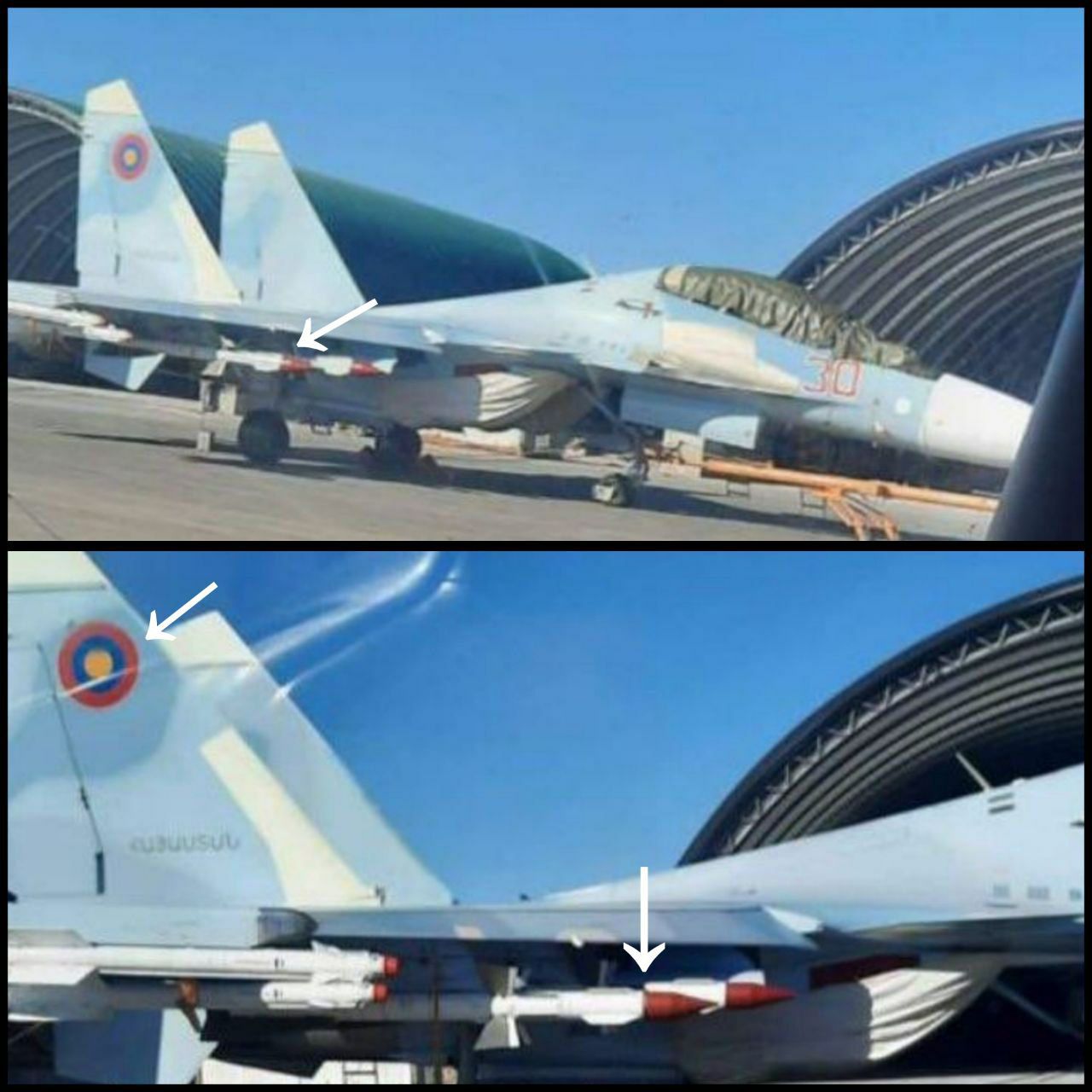 Цитата (Potti @ Мар 25 2021, 22:02) Тут вылезли фото армянских СУ-30СМ, предположительно сделанные в октябре. На них запечатлены ракеты воздух-воздух Р-27 и Р-73. До этого, в июле СУ-30СМ проводили тренировочные полеты с пусками ракет воздух-земля. Интересно, об отсутствии каких ракет говорил господин Пашинян... Наверное про Р-77. Хотя если это вообще боевые ракеты... Где именно армянские СУ-30 в июле пускали УР-ы? |