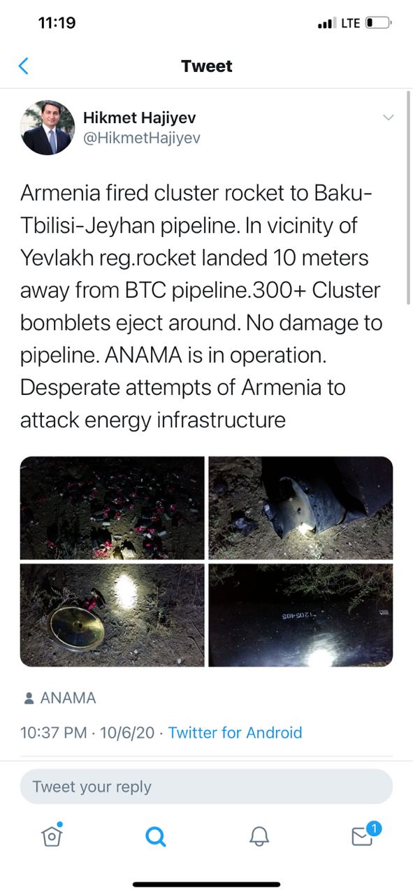 Цитата (pfc_joker @ Окт 6 2020, 23:42) Ну вот я подозреваю, что ракета на фотках "в 10 м от газопровода" – азербайджанская, и тем самым армяне по нему вообще не стреляли. Вопрос, куда запустили "Точки" и с каким результатом, остаётся в таком случае открытым. Азерский фейк ![]() ![]() Азербайджан обвинил Армению в обстреле нефтегазопровода с применением кассетных боеприпасов... которые есть на вооружение только у Азербайджана. Фото кассетных боеприпасов на «месте атаки», выложенные помощником президента Азербайджана, идентичны тем, которыми Азербайджан обстреливал Степанакерт. Amnesty International идентифицировали их как израильские кассетные боеприпасы M095 DPICM, запущенные израильской ракетной установкой LAR-160. Данные ракетные комплексы и боеприпасы есть только в арсенале Азербайджана — у Армении таких нет -------------------- Красный цвет - цвет администрации. © Pampa