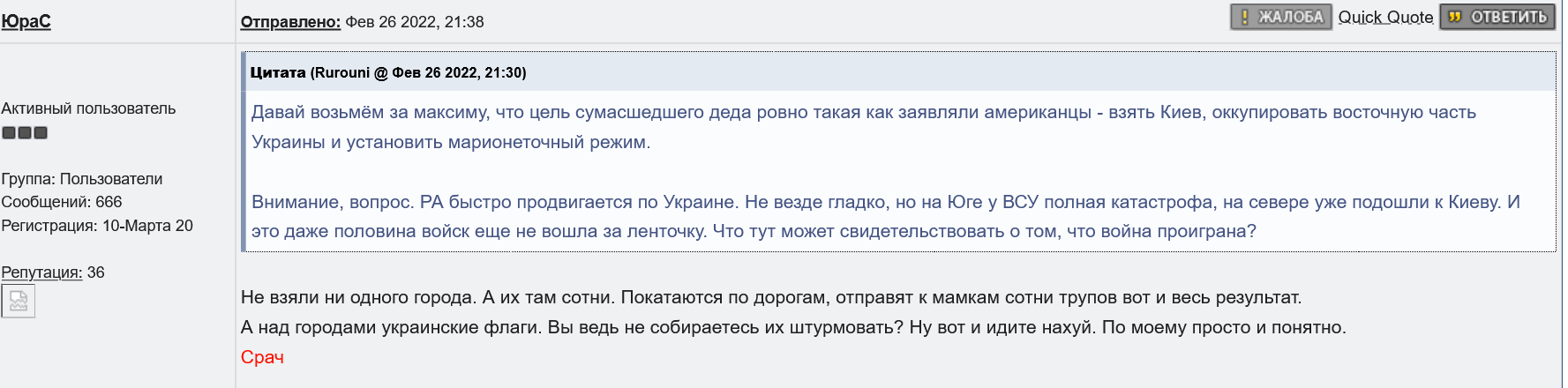 Цитата (Nechriste @ Мар 20 2023, 20:49) Феерический разъеб доморощенного "инструктора" (хз кто он, но говорт популярный...надеюсь был) -------------------- Такие как ты исподтишка тролят патриота © Madiev.
