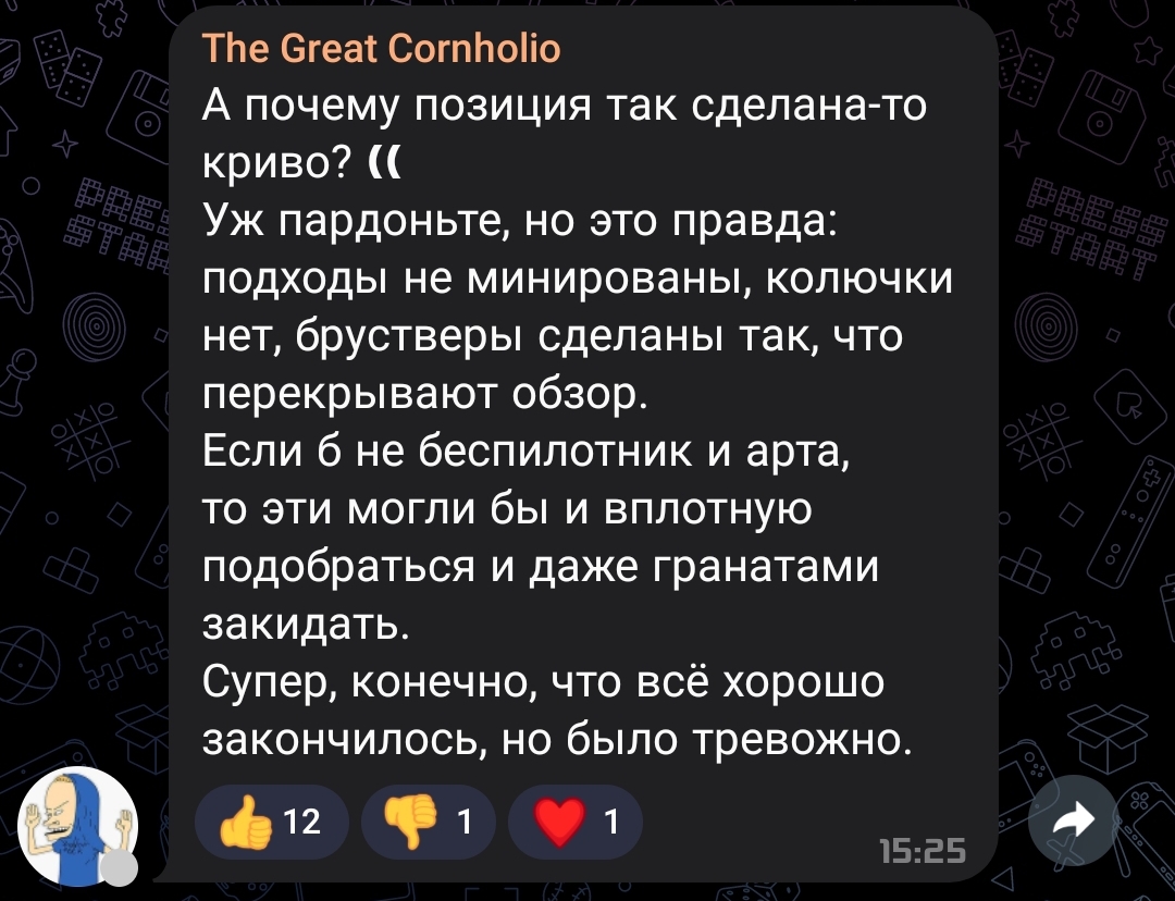Цитата (12th @ Мар 26 2023, 16:36) Вторая часть от К-2 Ну там попытка зачистка траншеи прямо для тебя. |