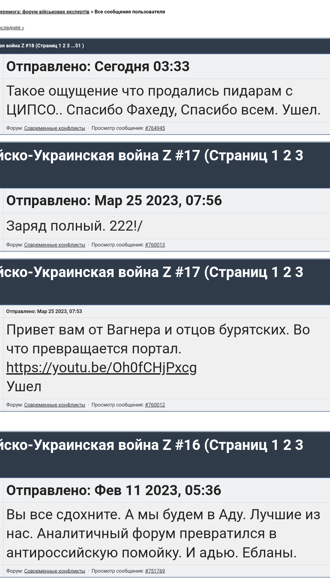Цитата (sulik @ Май 1 2023, 03:33) Такое ощущение что продались пидарам с ЦИПСО.. Спасибо Фахеду, Спасибо всем. Ушел. пидары это ж москали |