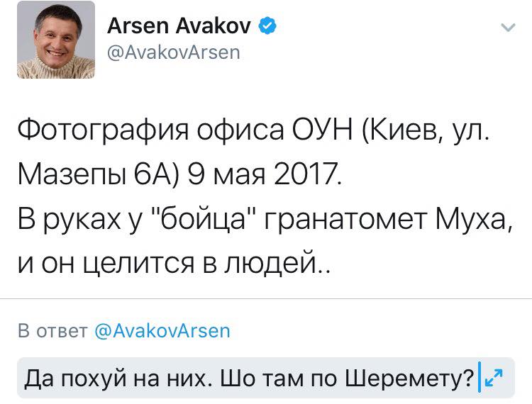 Цитата (Прапор @ Май 10 2017, 21:24) «Громадське» и OCCRP: у дома Павла Шеремета во время закладки бомбы в машину находился сотрудник СБУ https://meduza.io/news/2017/05/10/gromadske...a-sotrudnik-sbu Фейсбукминистр отжигает Нажмите для увеличения -------------------- Духовность, Смирение, Кефир!