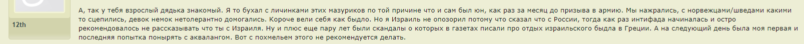 Михалыч как обычно набрасывает, я как обычно ведусь. Потом открываю что нибудь по типу советской всемирной истории в 24 томах или советской исторической энциклопедии в 16 и успокаиваюсь (С) fahed Меня всегда веселит эта черта в наших эмигрантах. Они всё знают лучше всех. Особенно, как правильно страной управлять. И всех пытаются учить. Ну езжайте домой и постройте так, как вам надо. (С) Juan Carlos Паранойя в наших рядах не приветствуется, но никогда нельзя забывать о том, что кругом одни враги! Не забудем Бармалея и Аталекса! Смерть фашистам! Ты не путай россиян, у 85% которых смысл жизни в основном грабь, воруй, еби гусей и где бы бояры накатить, и израильтян. (С) 12th |