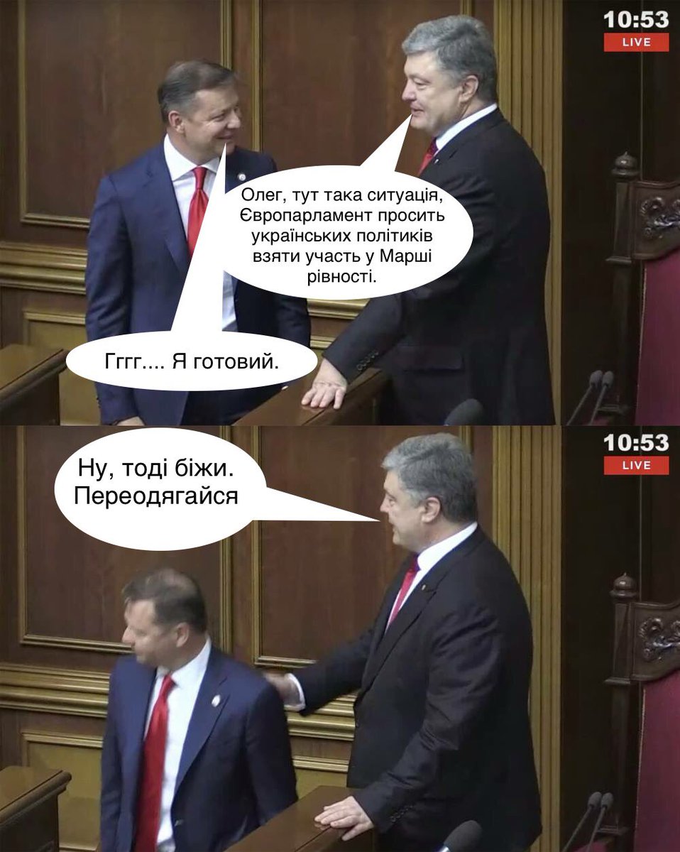 Соответствующее письмо украинскому руководству направили депутаты Европарламента «Сделать исторический шаг» призвали президента Украины и первых лиц страны депутаты Европарламента. Для этого украинским лидерам необходимо встать во главе гей-парада, который вскоре пройдет в Киеве. В Европарламенте убеждены, что президент Украины Петр Порошенко должен возглавить гей-парад, который должен пройти в украинской столице 17 июня. Также «встать в его первых рядах» необходимо членам правительства и парламента страны. Об этом говорится в письме, адресованном украинским властям, подписали которое 35 депутатов Европарламента. Авторы письма считают, что первые лица Украины сделают таким образом «исторический шаг». «Мы призываем украинских лидеров присоединиться к своим гражданам на «Марше равенства» 17 июня. Сделайте исторический шаг и будьте в первом ряду, пока украинцы идут к тому, чтоб стать сильной и равноправной демократией в нашей европейской семье», — написали евродепутаты украинским властям. При этом в письме подчеркивается, что руководство страны пока прилагает недостаточно усилий для обеспечения прав представителей ЛГБТ-сообщества. http://www.mk.ru/politics/2018/06/09/evrop...-geyparada.html -------------------- К несчастью, мир сейчас не таков, каким был раньше. Дети