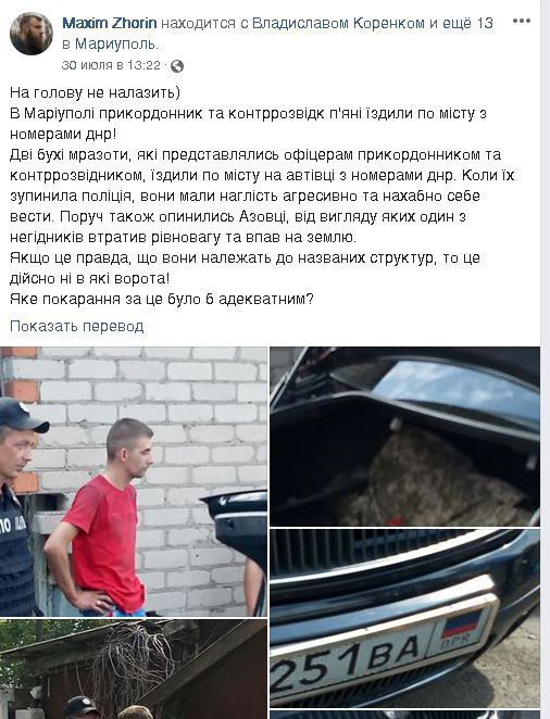 В этой новости прекрасно все. В Мариуполе задержали машину с номерами ДНР, в ней катались в жору пьяные пограничник и контрразведчик ВСУ.