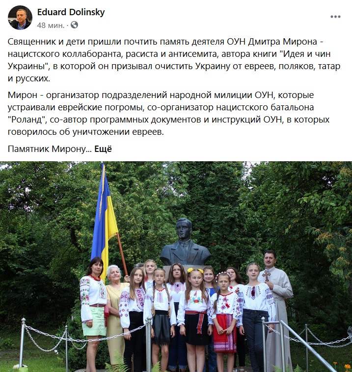 22 июня 1944 года в Немирове Львовской области публично повесили полицаев, членов ОУН-УПА - Мыколу Барана, Ивана Воробля, Стефана Наконечного, Дмитра Василишина, Ивана Клебана. Последние двое, кроме полиции, успели послужить в дивизии СС «Галиция». За что их казнили? Половину трехтысячного местечка Немиров составляли евреи. Еще половина - поляки и украинцы. Вышеназванные воины в июле 1941 года добровольно вступили в украинскую вспомогательную полицию и участвовали в массовом убийстве всех евреев Немирова - около 2 тысяч человек, включая женщин, детей и стариков. После этого некоторые из полицаев пошли в УПА, другие - в СС. Теперь в Немирове нет ни одного еврея и ни одного поляка, а есть памятник их убийцам на главной площади с именами убийц. https://www.facebook.com/photo/?fbid=321257...783668934998510 -------------------- Вы нагло стяжали огромный запас знаний, и тенденциозно его используете в свою личную пользу. Я чую что я прав, но не знаю как это обосновать против такого исторического и интеллектуального чудовища как вы, и это меня злит!