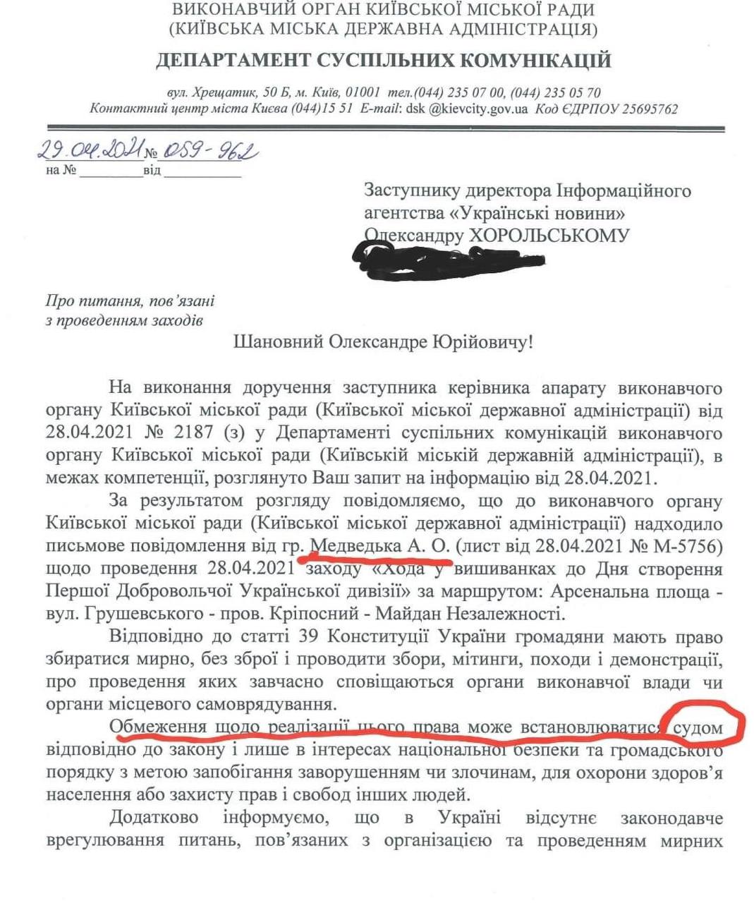 В продолжение темы марша, вообще бля заебись, заявку подавал человек который находится под подозрением в убийстве Бузины. В мэрии не нашли причин отказать уважаемому человеку и не обратились в суд за запретом. При этом я хочу напомнить Киев находится в красной зоне карантина по ковиду , рестораны только на вынос , метро по пропускам и все такое.Заявка на проведение марша в честь 78-летия дивизии СС "Галичина" была подана Андреем Медведько, который обвиняется в убийстве журналиста Олеся Бузины. Об этом говорится в ответе КГГА на запрос «Українських Новин». "В исполнительный орган Киевского городского совета поступило сообщение от Медведько А.О. по поводу проведения 28 апреля мероприятия "Марш в вышиванках ко Дню создания Первой Добровольческой Украинской дивизии", - сказано в нем. Ещё раз: обвиняемый в убийстве писателя и журналиста ходит на свободе и организовывает марш в честь дивизии СС. К слову, из ответа КГГА вытекает, что там не увидели поводов обращаться в суд по запрету марша. -------------------- Красный цвет - цвет администрации. © Pampa