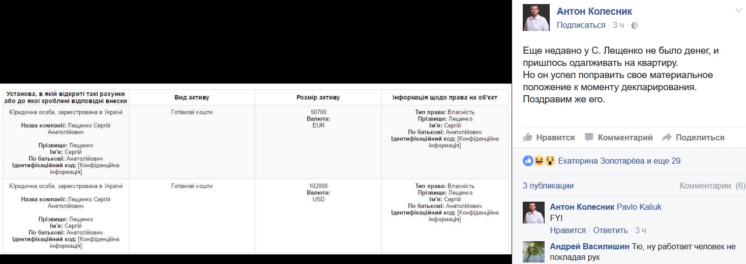 Цитата (Pampa @ Окт 28 2016, 18:51) Министр внутренних дел Арсен Аваков обнародовал свою электронную декларацию. У министра и его жены есть крупные суммы в разной валюте. Аваков располагает 118 тысячами евро, 178 тысячами долларов и 265 тысячами гривен наличными. Его жена хранит дома 1,3 млн гривен, 275 тысяч долларов и 30 тысяч евро. В банках Аваков держит 218 тысяч гривен и драгоценные металлы на сумму 200 тысяч гривен, а его жена хранит в банке 148 тыс. гривен. http://lb.ua/news/2016/10/28/349176_avakov...ktsionerom.html еще одно подтверждение того, что армяне намного лучше если до Майдана состояние Авакова оценивалось в 90 - 100 миллионов долларов, то теперь какие-то копейки просто вот так вот, в кризис он все деньги отдал народу, всё для страны |