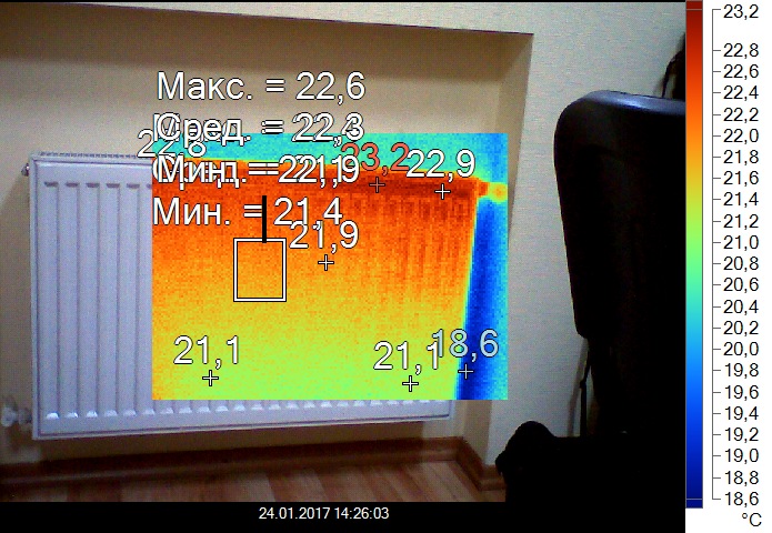 Дело происходит в Одессе на Форуме свидомых в Одессе Обсуждают отопление. Батарея. ![]() Автор: Цитата У меня сейчас в офисе 20,5 оС. При этом радиатор холодный. При помощи тепловизора хочу показать, как холодный радиатор обогревает помещение. Это видно потому, что сверху радиатора температура выше чем внизу. На тепловом счетчике сейчас t1/t2=42/24 oC. Потребляемая мощность 0,2 кВт (200 Вт) Это я к чему? На ощупь радиатор холодный, т.к. он ниже температуры тела (36,6 оС), а на самом деле он обогревает. А где учет теплопотерь, через стены, окна, двери, вытяжку на кухне, туалете?. -------------------- |