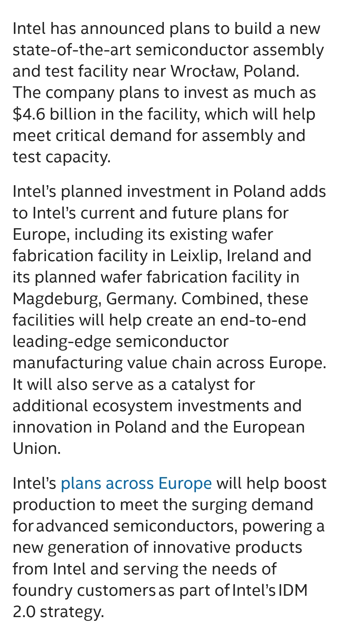 Цитата (12th @ Сегодня, 10:56) Наверное проще завод возле Дрездена построить где все четко, понятно, прозрачно и стабильно. Интел в Польше собирается строить. Украину пока во второй мир не берут. -------------------- |
