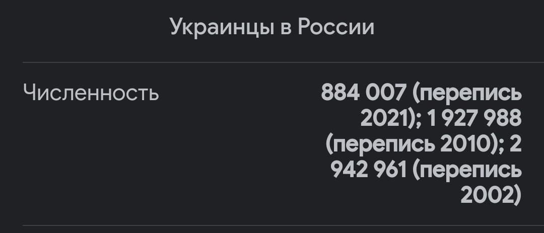 Цитата (Juan Carlos @ Сен 16 2023, 15:59) а вот, жи есть, такой вопрос. в роисси есть куча ввсяких национальных республик, а украинской нет. хотя украинцев в РФ больше, чем бурятов, тувинцев и евреев, вместе взятых. а если посчитать еще и криптохохлов, то их будет больше, чем самих русских. но у тувинских бурято-евреев свои республики есть, а у украинцев - нет. что это, если не ужасающая дискриминация? Всего то 880 тыс. украинцев в 2021. Причём с 2002 года их количество сократилось в 3,5 раза. Зачем этим малоросикам национальная республика, если они адиннарод с государствообразующими? [Показать/Скрыть] |