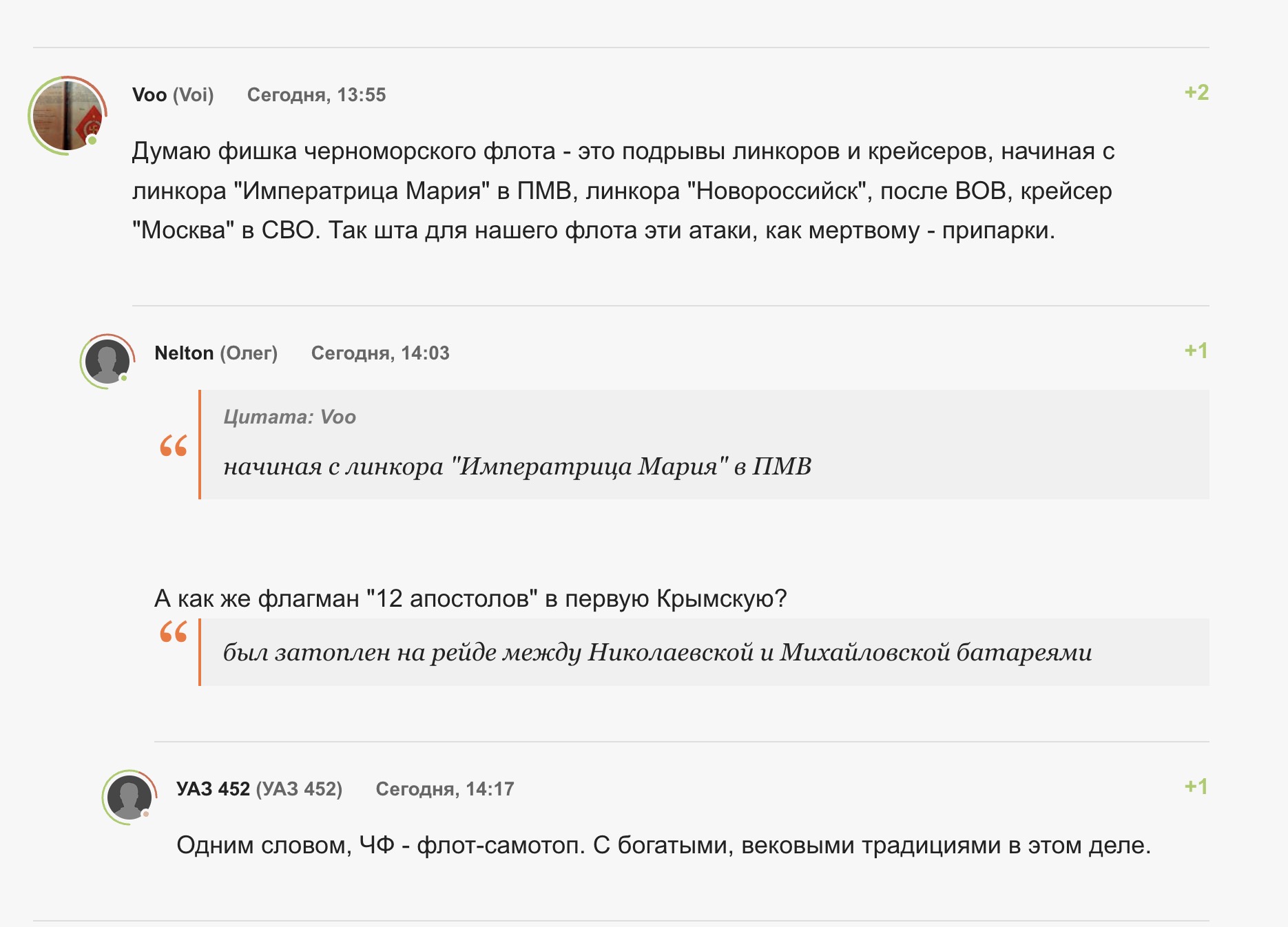 Цитата (serafim @ Сегодня, 13:13) нехристи предпочитают шоколадного барыгу поносить, который всё великому Зк победить мешает Чото не припомню, чобы я называл Зе "великим", или еще каким-либо образом восхвалял. Да и Петю "шоколадным барыгой" вроде не называл. Я даже хвалил его за помощь ВСУ, хоть и не бескорыстную. Критиковал - тоже да, за дело - и за "дела" когда был при власти (хотя там и похвалить есть за что), и за деструктивную политику в оппозиции. Конечно, проделки его команды это не основная причина, которая "мешает победить" - но вреда эти политические игрища наносят немало. Да, Зе (и особенно ко.) тоже есть дохрена за что критиковать - но это ваше постоянное нытье и вбросы (зачастую необоснованные) никакой пользы не несут. "Все хуево, все воруют, воевать не умеют, всех расстрелять" - это не конструктивная критика, а какое-то говно. Цитата (serafim @ Сегодня, 13:13) вместо того чтобы мины точать, тачки перегонять всу ты не знаешь, чем я занимаюсь, поэтому не кукарекай впустую. |